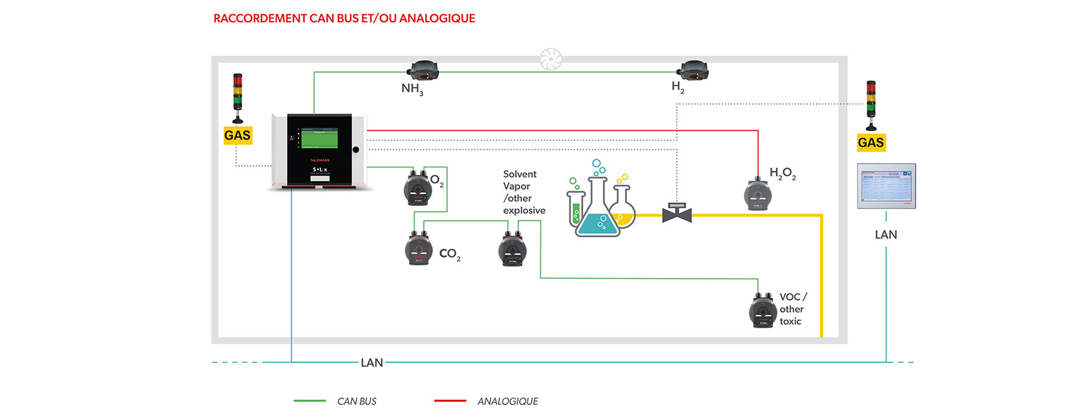 La solution DALEMANS permet de raccorder un écran tactile via le réseau Lan du Laboratoire. La visualisation en temps réel de la détection des gaz toxiques et explosifs assure une protection préventive.