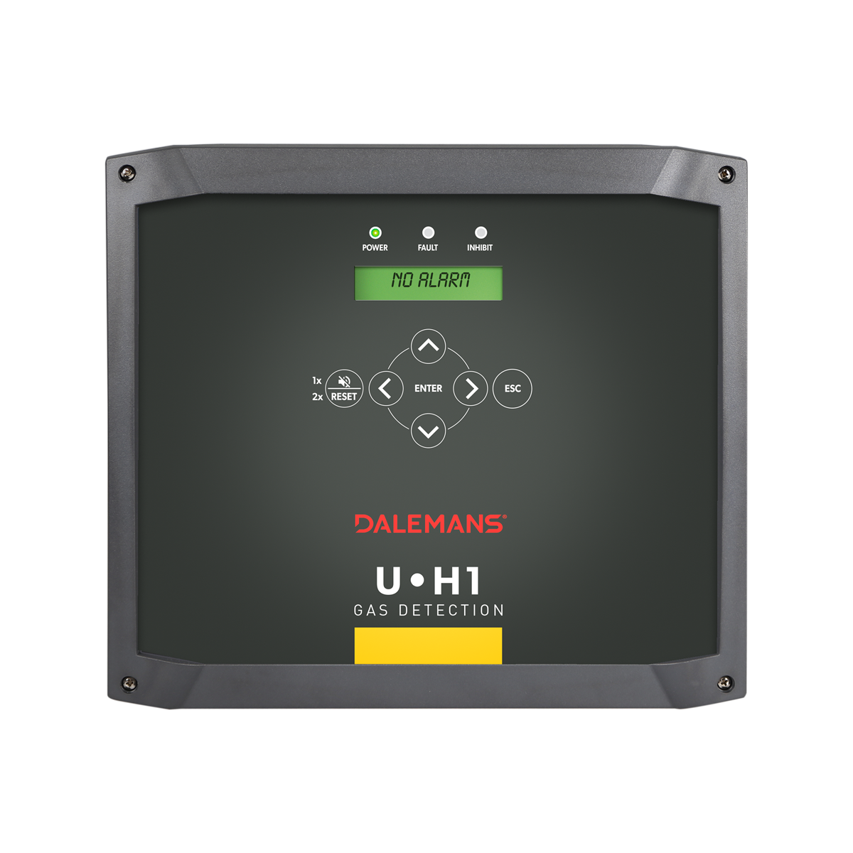 La centrale d’alarme U•H1 possède 3 relais d'alarme de présence de gaz programmables, ainsi qu'1 relais de signalement des défauts. L'U•H1 possède un menu de service avec protection d'accès par mot de passe.