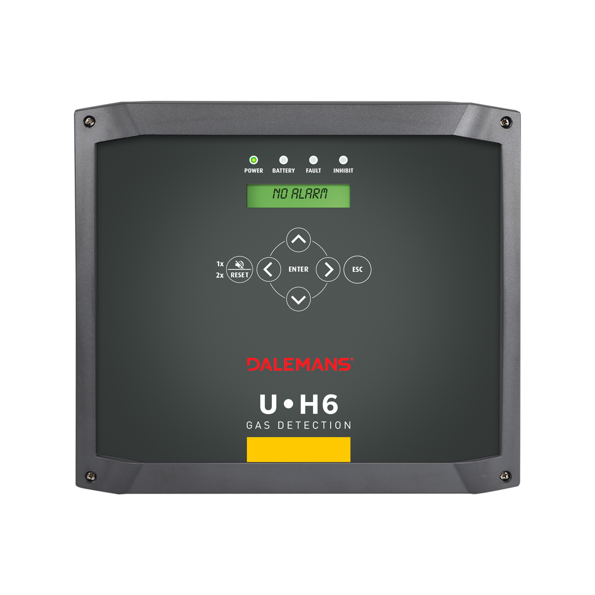 La centrale d’alarme de détection de gaz explosifs U•H6 permet la surveillance des concentrations de gaz explosifs tels que l'hydrogène H₂, le méthane CH₄, le propane C₃H₈ ou le butane C₄H₁₀ dans les chaufferies.